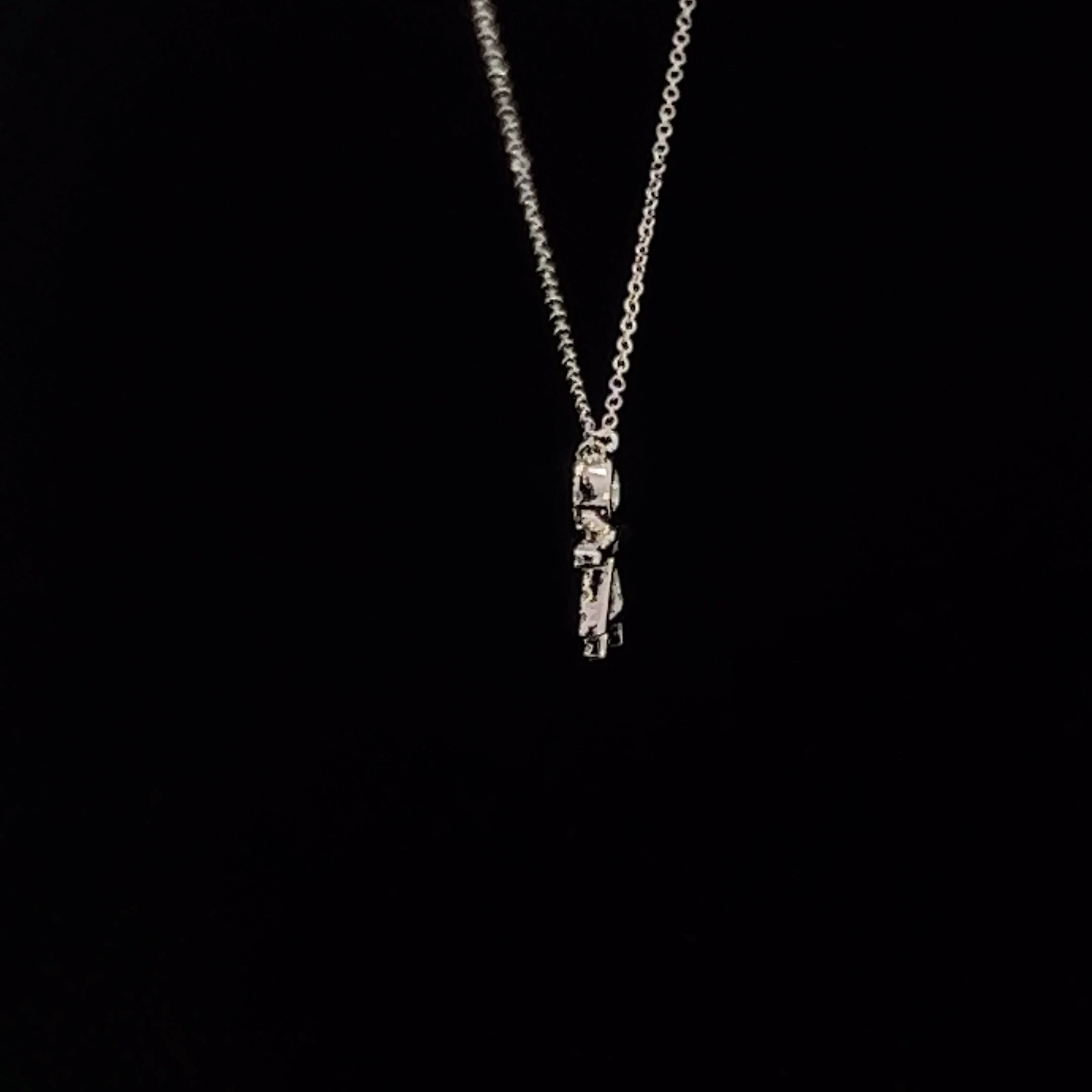14k White Gold at 1.55 Grams 29 Round Diamonds at 0.12 Carats 14k White Gold Chain at 16″+2″ Adjustable